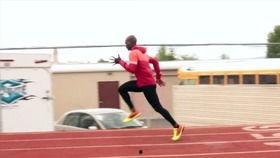 在速度训练环节,李阳展现出了惊人的爆发力。他手持短跑专用鞋,在跑道上进行冲刺训练。每一次起跑都像离弦之箭,让人目不暇接。